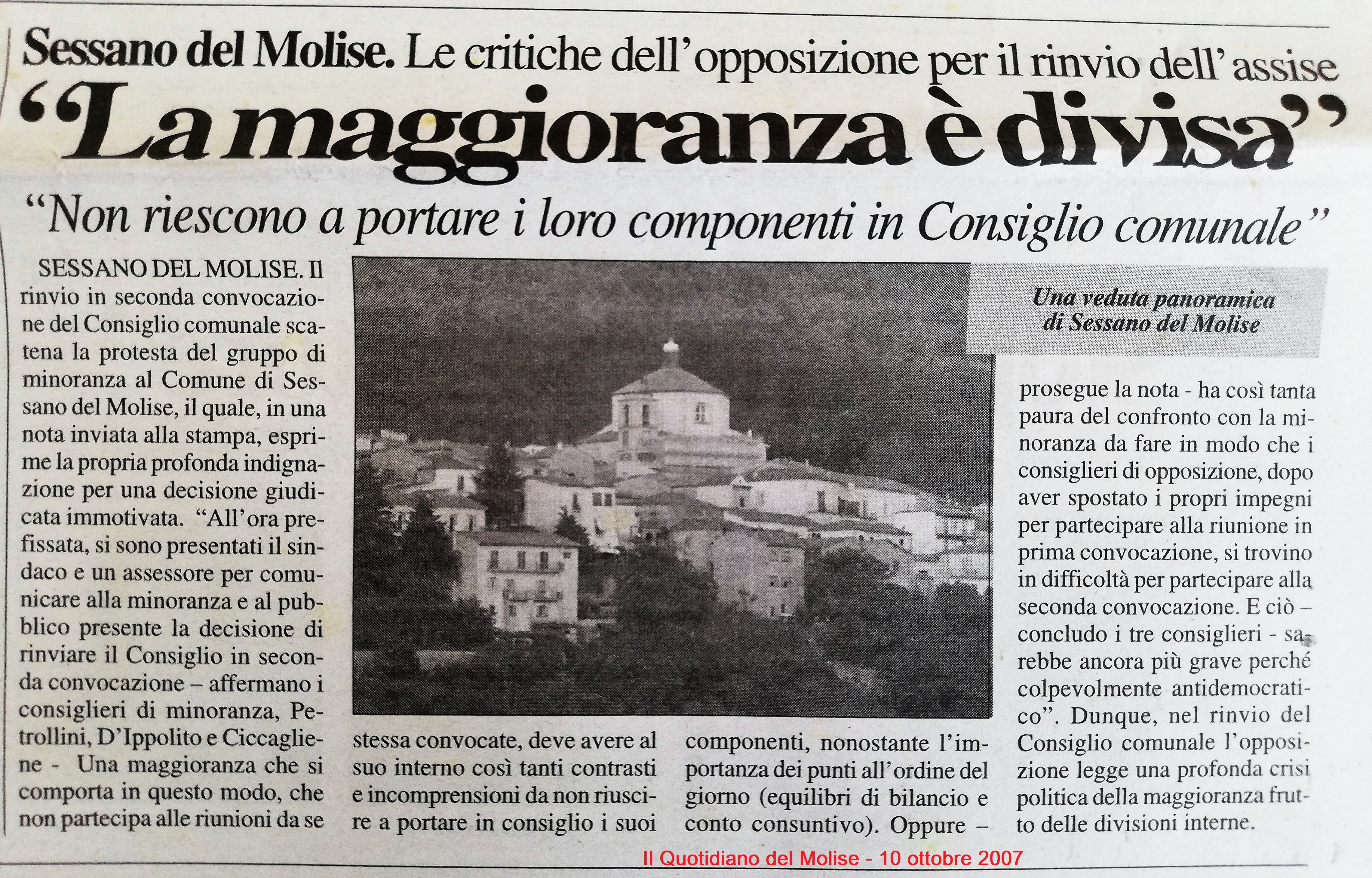 10 ottobre 2007 - Rinvio del Consiglio comunale (Il Sannio Quotidiano)
