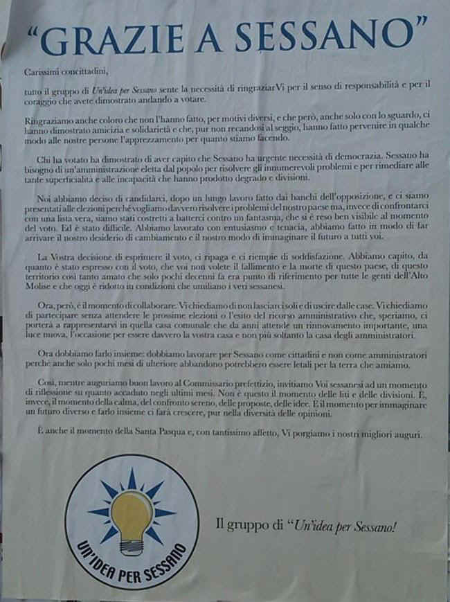 3 aprile 2010 - Manifesto di ringraziamento Un'idea per Sessano
